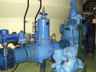 4、流量與減壓閥過流面積:電磁流量計(jì)顯示為1100m3/h,此時(shí)主閥過流面積為17357mm2(大過流面積53092mm2),只占大過流面積的32%,還有充分的的過流量。計(jì)算出過流孔流速為17.6m/s。與我們的分析數(shù)據(jù)相關(guān)不大。至2008年10月止,紫坪鋪電站全部機(jī)組的技術(shù)供水系統(tǒng)全部改造完畢。